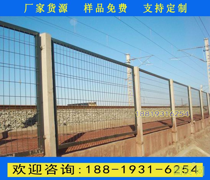 鐵路防護柵欄主要分鍍鋅防護柵欄、浸塑防護柵欄倆大種類,是以立柱加網片連接而成。選用優質低碳鋼絲焊接。不僅外觀大方,美觀,而且牢固,防腐性好。主要適用于鐵路兩旁及邊界的隔離防護及美化。