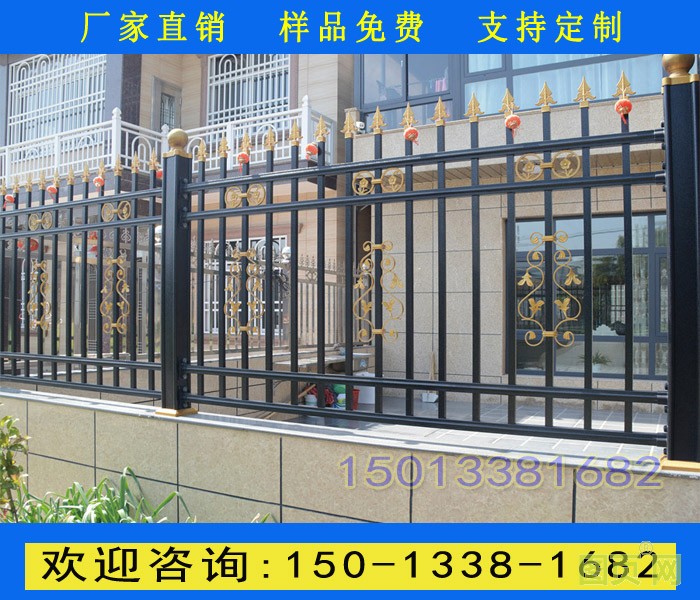 鐵藝護欄的材料以及常見規格與A型鐵藝護欄的一致。兩者的區別就是橫梁的數量不同。