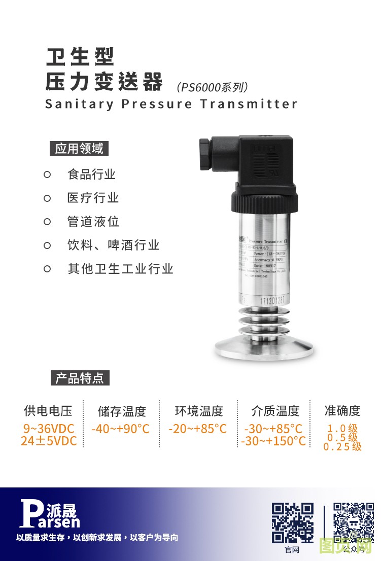 本網頁所展示的有關【衛生型壓力變送器】的信息/圖片/參數等由的會員【廣東派晟工業技術有限公司 】提供,由圖頁網會員【廣東派晟工業技術有限公司 】自行對信息/圖片/參數等的真實性、準確性和合法性負責,本平臺(本網站)僅提供展示服務,請謹慎交易,因交易而產生的法律關系及法律糾紛由您自行協商解決,本平臺(本網站)對此不承擔任何責任。您在本網頁可以瀏覽【衛生型壓力變送器】有關的信息/圖片/價格等及提供 【衛生型壓力變送器】的商家公司簡介、聯系方式等信息。
