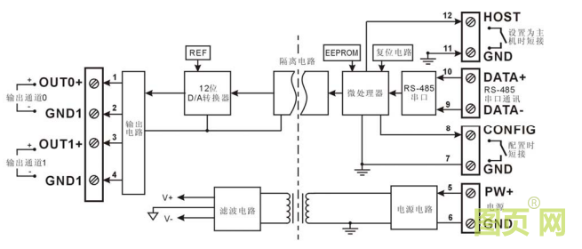 RS485或RS232數字量隔離轉換成標準模擬信號輸出