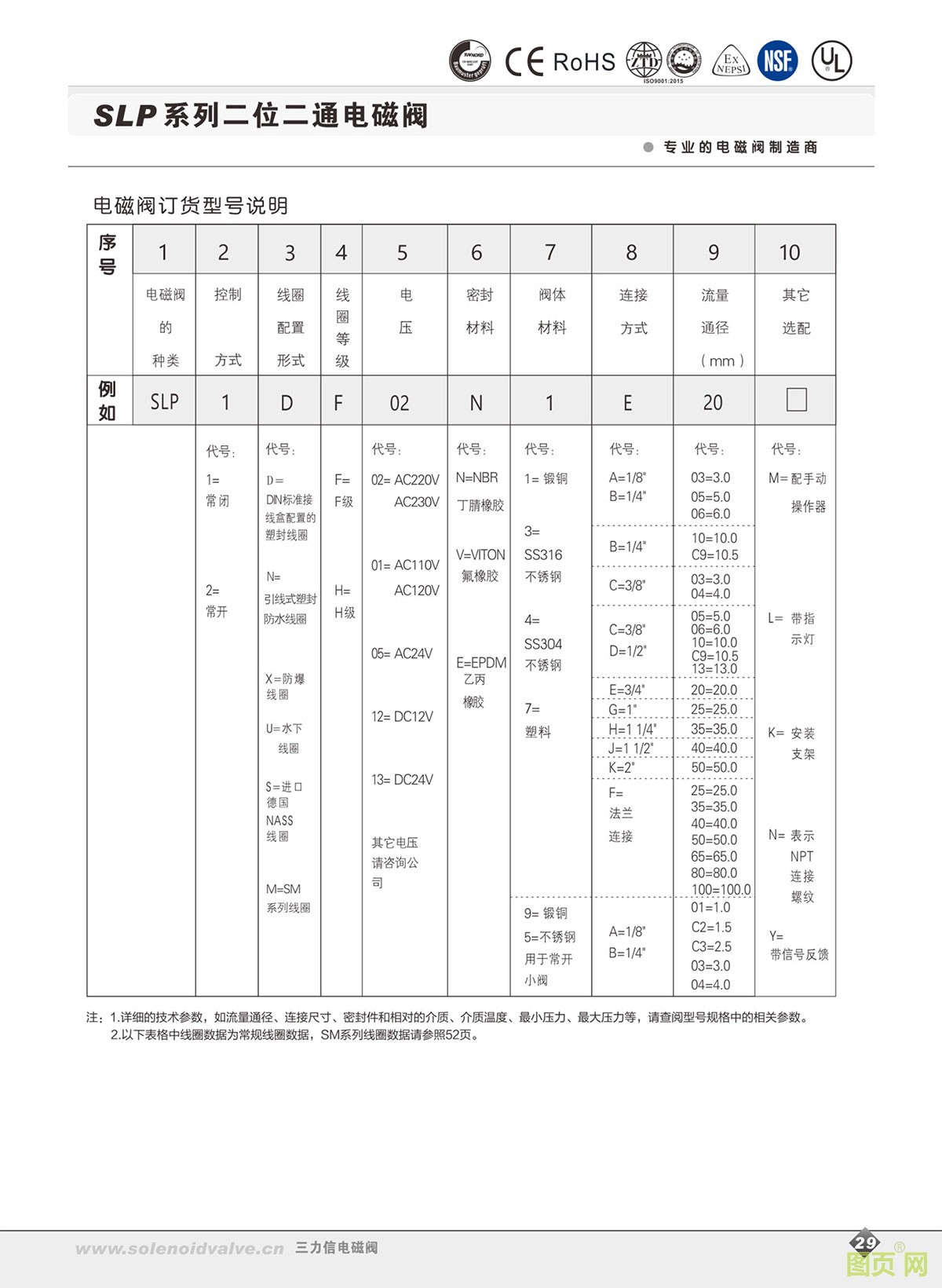 SLP二位二通微型系列直動式電磁閥/常閉型
