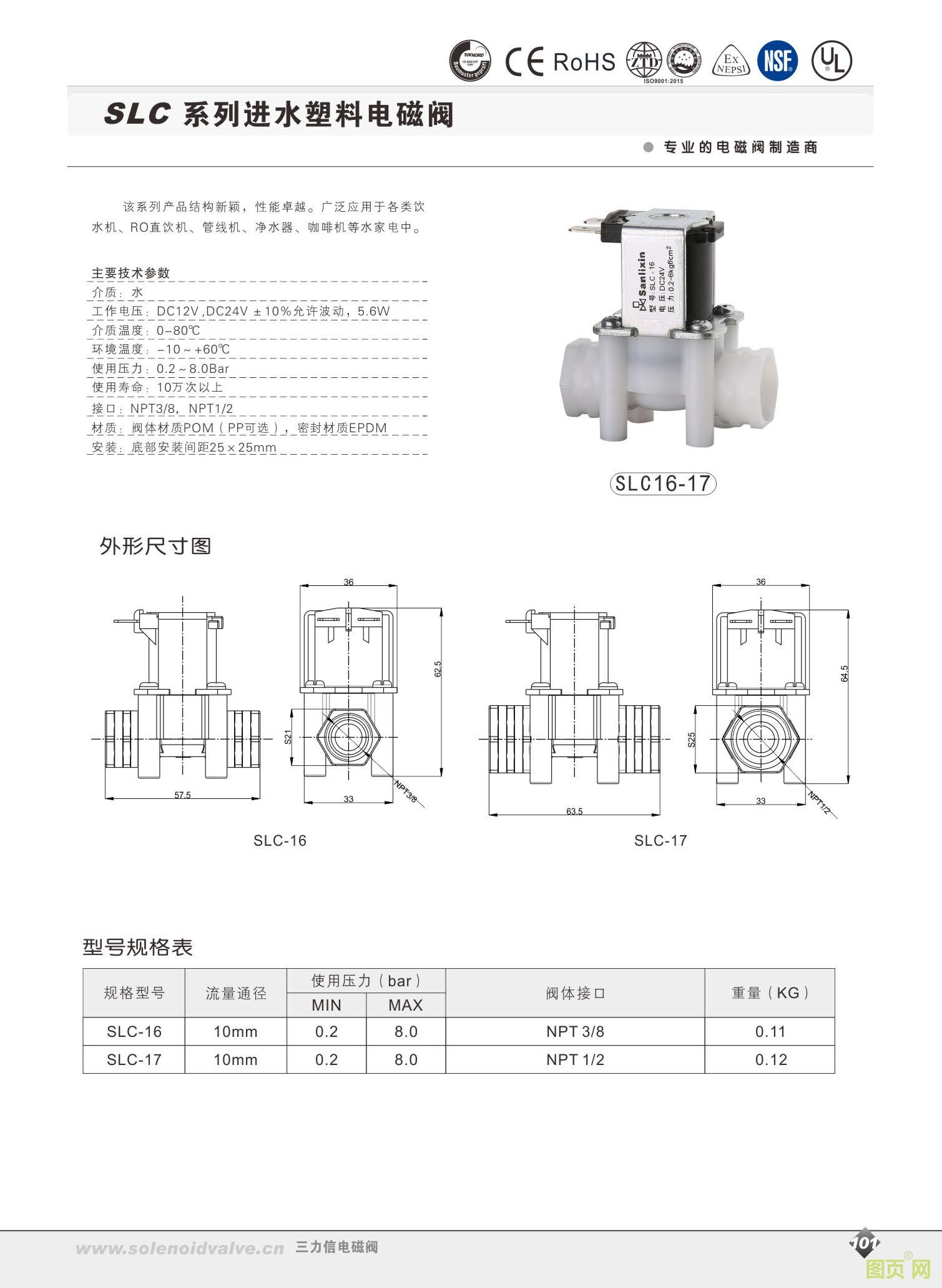 本網頁所展示的有關【三力信_SLC系列進水塑料電磁閥_電磁閥】的信息/圖片/參數等由的會員【余姚市三力信電磁閥有限公司 】提供,由圖頁網會員【余姚市三力信電磁閥有限公司 】自行對信息/圖片/參數等的真實性、準確性和合法性負責,本平臺(本網站)僅提供展示服務,請謹慎交易,因交易而產生的法律關系及法律糾紛由您自行協商解決,本平臺(本網站)對此不承擔任何責任。您在本網頁可以瀏覽【三力信_SLC系列進水塑料電磁閥_電磁閥】有關的信息/圖片/價格等及提供 【三力信_SLC系列進水塑料電磁閥_電磁閥】的商家公司簡介、聯系方式等信息。