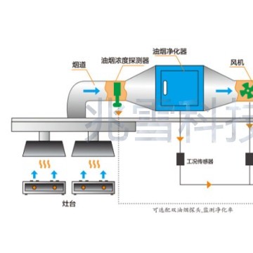 油煙濃度探測器安裝于煙道內(nèi),將采集到的數(shù)據(jù)通過有線方式傳輸至主機(jī),風(fēng)機(jī)和凈化器工況采集模塊將采集到的數(shù)據(jù)也傳輸至主機(jī)。主機(jī)將收到的所有信息進(jìn)行分析處理后,通過有線(RJ45)或者無線(4G)方式將數(shù)據(jù)傳輸至提前平臺。監(jiān)測數(shù)據(jù)可實(shí)時傳輸至兩個監(jiān)控管理平臺,可實(shí)現(xiàn)和環(huán)保局或者數(shù)字化城管現(xiàn)有監(jiān)控系統(tǒng)管理平臺的順利對接。