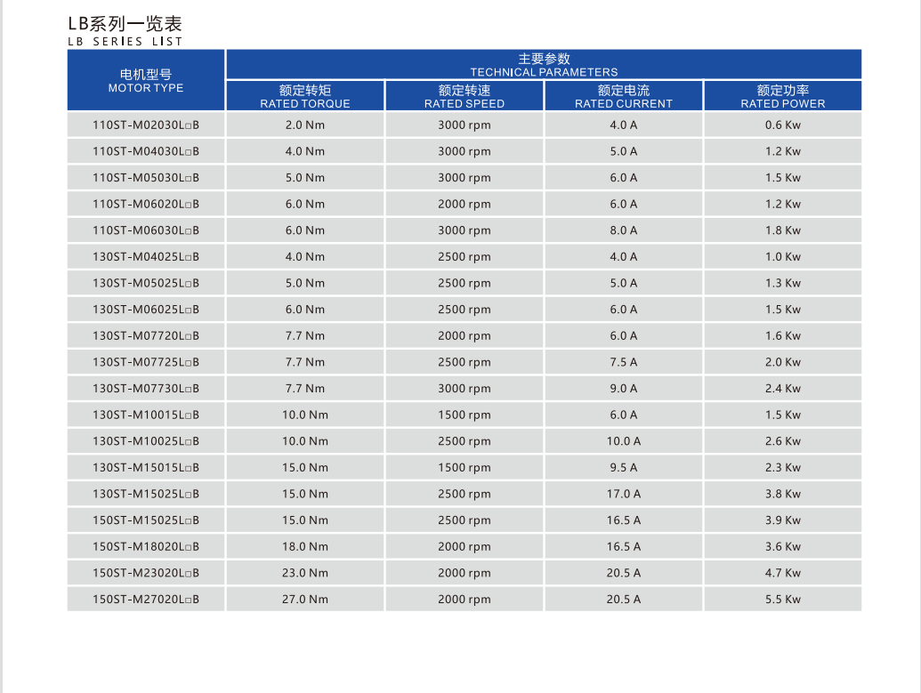 ⑷ 額定轉矩:三位數×0.1Nm ⑸ 額定轉速: 二位數×100rpm ⑹ 驅動器工作電壓(VAC):220