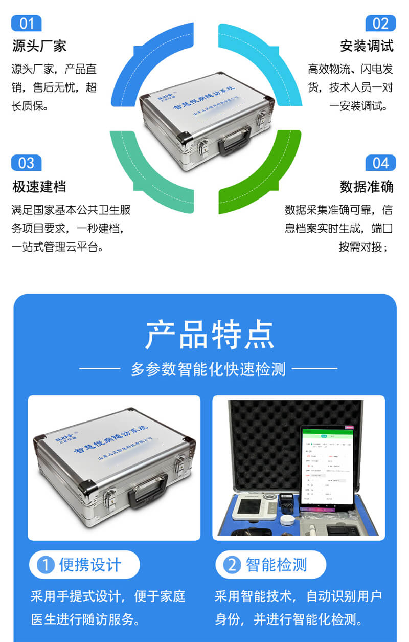 首先,上正華瑞公衛隨訪包的便攜性是其一大特點。這種隨訪包設計精巧,方便攜帶,使得醫務人員能夠隨時隨地為慢病患者進行隨訪。無論是在社區、鄉村還是患者的家中,都能夠迅速開展隨訪活動,有效打破時間和空間的限制,為慢病患者提供更加及時、便捷的健康服務。