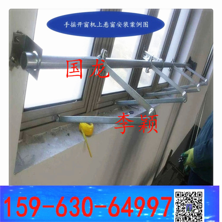 工作原理----本產(chǎn)品下式手搖機為主動機構、中式和上式開窗機為傳動減速機構。相互間分別用聯(lián)動鋼管聯(lián)接,在啟閉多排側窗扇時,上式開窗機主要用于啟閉高排窗扇,而中間各排窗扇的啟閉則靠中式開窗機來完成,在中式或上式開窗機的輸出軸上裝有轉動鋼管和開關器,開關器與窗扇相聯(lián)接。