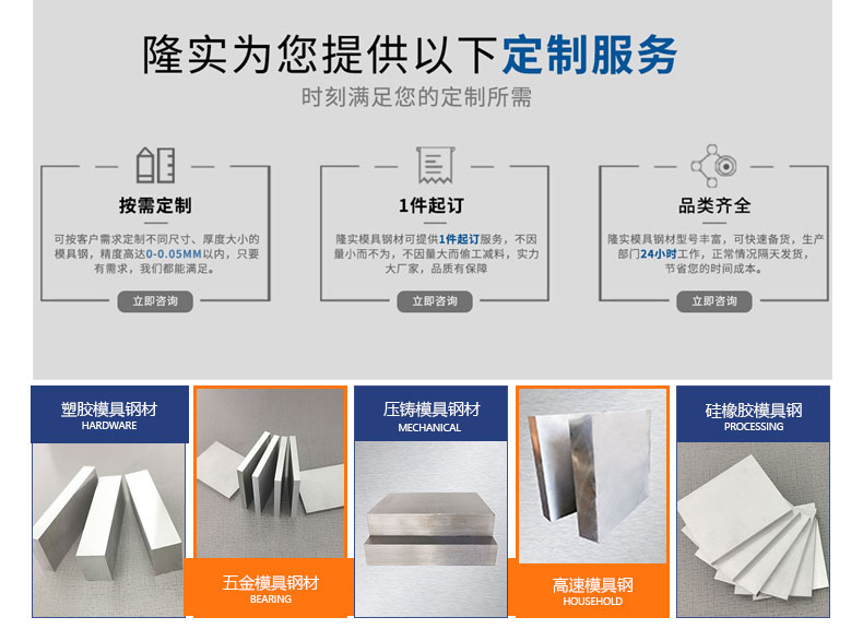 】自行對信息/圖片/參數等的真實性、準確性和合法性負責,本平臺(本網站)僅提供展示服務,請謹慎交易,因交易而產生的法律關系及法律糾紛由您自行協商解決,本平臺(本網站)對此不承擔任何責任。您在本網頁可以瀏覽【定制加工718H塑膠模具鋼沖子料種類齊全光板可定制】有關的信息/圖片/價格等及提供