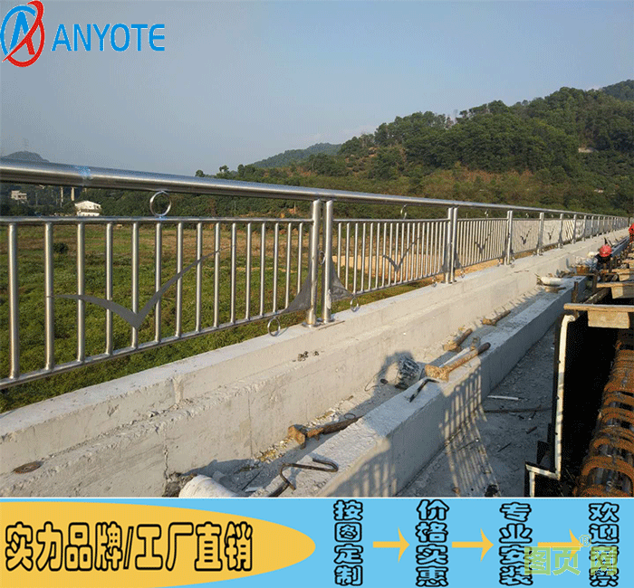 橋梁河道護欄 橋梁景觀護欄 不銹鋼欄桿 景觀 河道 河岸 人行道護欄防撞護欄的立柱可使用鍍鋅異性管、鍍鋅方管、鍍鋅圓管等,方管80*80mm。120*120mm等